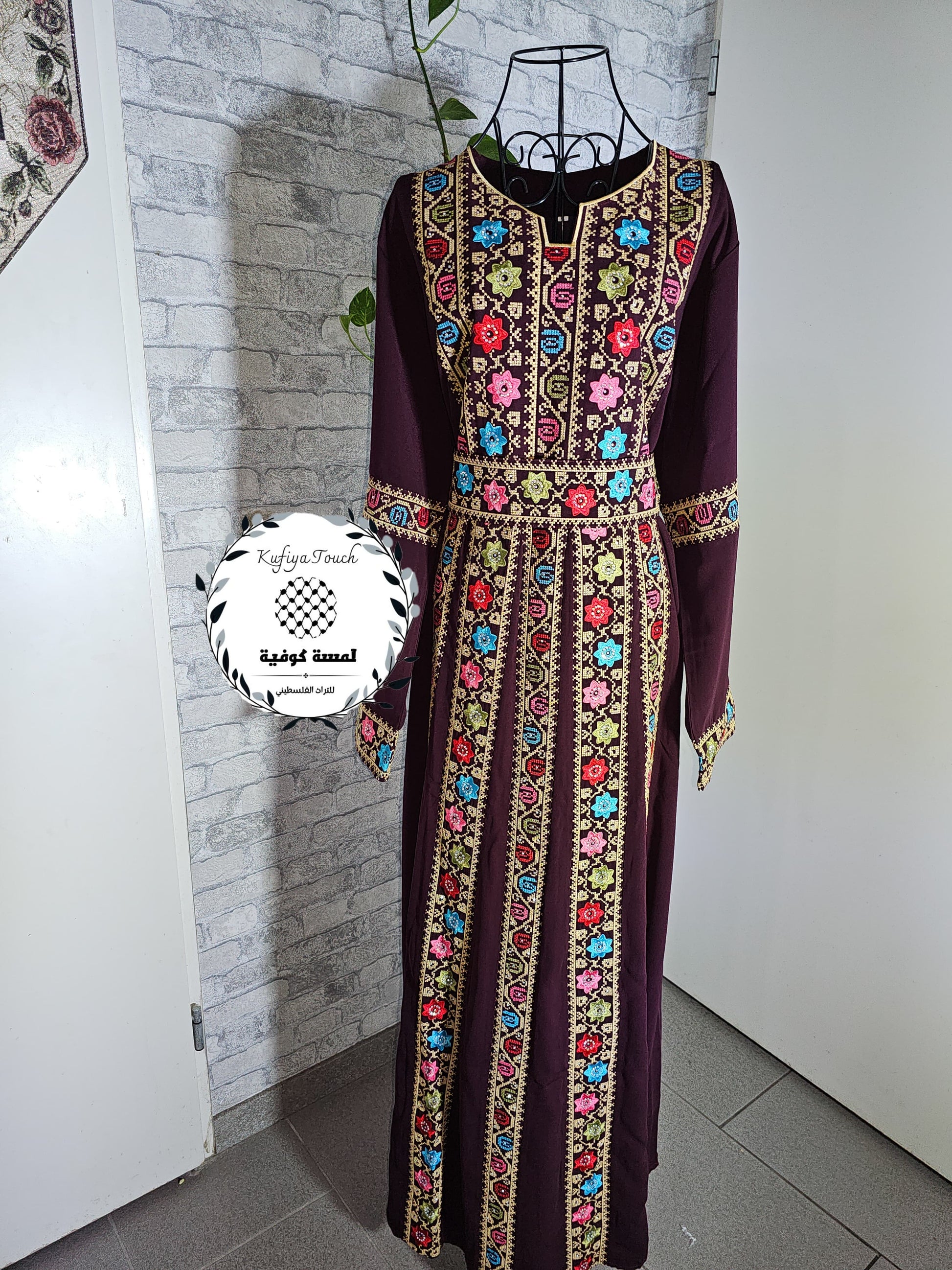 Deze prachtige jurk is geïnspireerd op de rijke Palestijnse traditie en biedt een stijlvolle en elegante uitstraling. Het ontwerp is voorzien van een kleurrijke en gedetailleerde borduurprint, wat de jurk een authentieke en culturele uitstraling geeft.