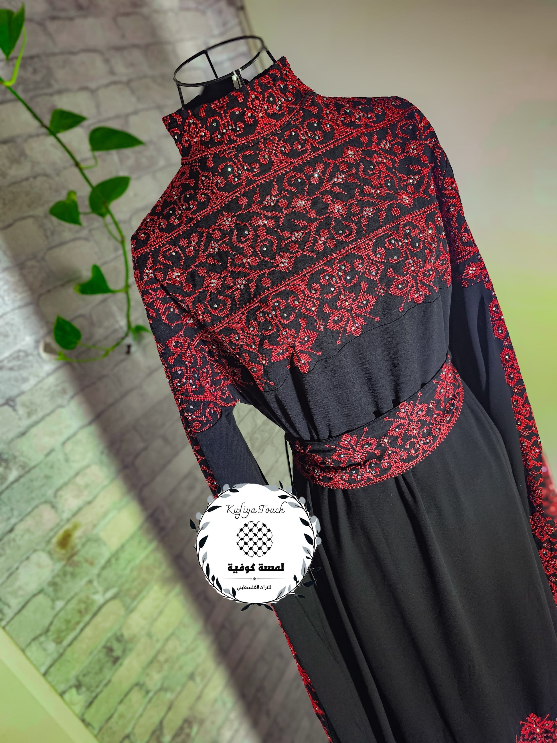 Deze elegante zwart-rode geborduurde maxi-jurk is een perfecte mix van traditie en moderne stijl. De jurk heeft een zwarte basis met een prachtige rode borduurprint (niet handgeborduurd), wat zorgt voor een verfijnde en tijdloze uitstraling. De hoge kraag en bijpassende riem accentueren de pasvorm en geven een extra stijlvolle touch.